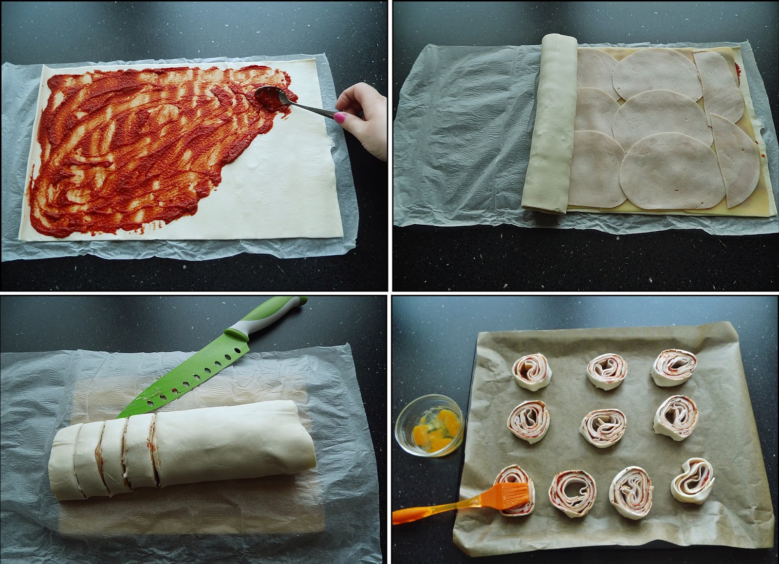 Ciasto przekładamy papierem, rozpłaszczamy i wstawiamy do lodówki na około 30 minut.